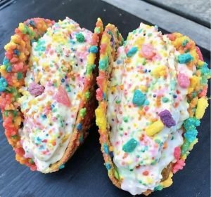 Fruity Pebbles Cheesecake Tacos